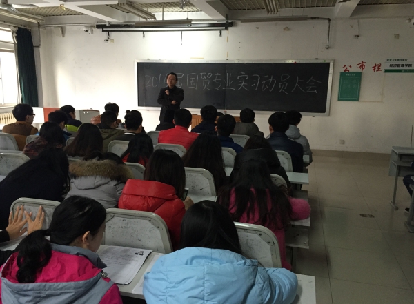 2016年1月7日下午,经济管理学院在文外楼307召开了2016届国际经济与贸易专业本科毕业生集中实习动员大会,专业负责人、实习带队老师以及集中实习的学生参加了会议。