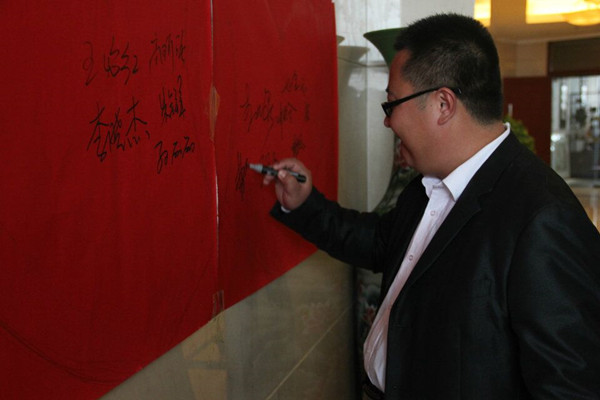 最后由管理学院党总支副书记赵健宣读山东青年政治学院物业管理专业校友会会长,副会长,常务理事名单,并表决通过。山东青年政治学院第一届物业管理专业校友会会长、副会长、常务理事合影签字留念。