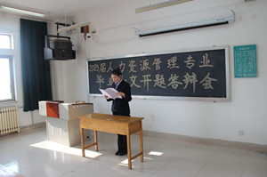 为了保证20115届人力资源管理专业毕业论文工作的顺利实施,帮助学生更好的完成毕业论文撰写工作,严格把控毕业论文撰写质量,保证毕业论文开题答辩的顺利实施,1月10日,管理学院分别在文外楼515,516,517,518教室,分四个小组进行了毕业论文开题答辩指导工作。管理学院王怡红教授,杜秀教授,刘春英教授,刘庆顺教授,赵健副教授,李鹏副教授,李洪深副教授,房列明副教授等人力资源管理专业全体教师作为各专家小组成员指导了毕业生答辩。