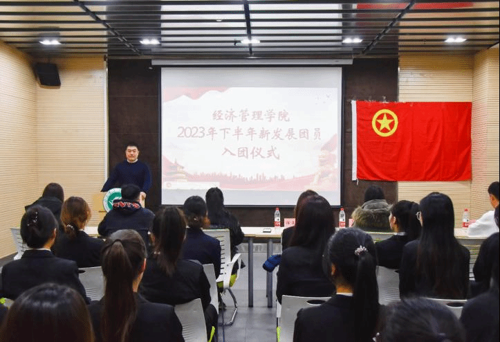 为全面贯彻习近平新时代中国特色社会主义思想和党的二十大精神,深入贯彻习近平总书记关于青年工作的重要思想,落实习近平总书记关于加强团员队伍建设的重要要求,聚焦学校“1158”发展战略,推进学院共青团事业高质量发展。12月27日,经济管理学院举办2023年下半年新发展团员入团仪式。经济管理学院党委副书记任正实,团总支书记、学工办主任夏晓丽,辅导员代表、新发展团员及部分青年学生代表参加本次仪式。