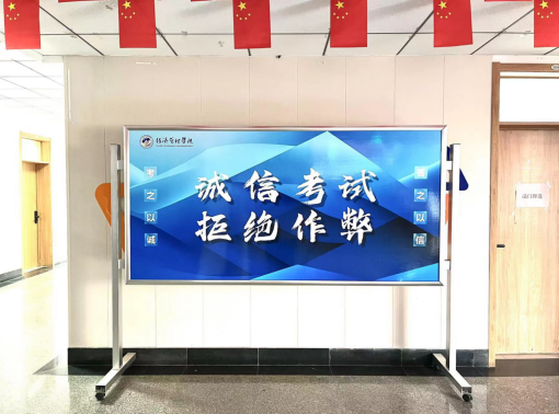 发布诚信考试倡议书,营造诚信考试氛围。学院注重诚信考试氛围营造,于教学区域显眼位置设立诚信考试、拒绝作弊主题展板,并面向全体同学发布诚信考试倡议书,引导同学们科学复习,认真备考;放平心态,从容备考;严守考纪,诚信应考。