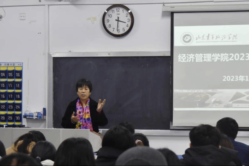 交流中,李玉英对学院围绕学校中心工作、以高质量党建引领学院事业高质量发展所取得的成绩给予了充分肯定,对学院教师尽职尽责尽力完成各项工作任务表示衷心感谢。她表示,2023年学院师资队伍建设卓有成效,学科竞赛实现历史突破,市校融合工程等教科研喜报连连,社会服务的影响力、美誉度不断提升,离不开全体教师的共同努力。她指出,经济管理学院经过多年的发展和积累,正值成果不断产出的阶段,学院上下要铆足干劲、充满信心。展望新的一年,李玉英积极鼓励教师一是加强政治理论学习,以积极向党组织靠拢的行动理解把握课程思政的内涵,以积极推动课程思政的实践丰富各专业思政教育内容、拓展立德树人渠道、提升人才培养质量;二是提升学历层次,加强专业研修和实践锻炼,聚力学院师资队伍结构优化提升,为学院硕士点申报夯实人才基础;三是加强高水平成果产出,常看、勤思、多练,增强应用型学术创新能力,产出高水平应用型科研成果,为全面落实科研兴校贡献力量。最后,李玉英为学院全体教师送上新年祝福。