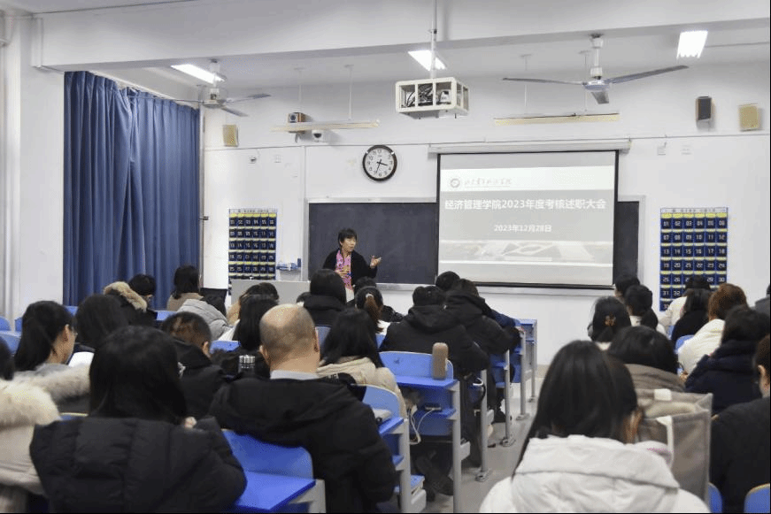 为全面总结学院2023年度各项工作,拓宽学校领导与基层教师长效沟通渠道,促进学校决策民主化、科学化和法制化。12月28日,学校党委委员、副院长李玉英出席经济管理学院“我与校领导面对面”暨2023年度教职工考核述职大会。学院班子成员及全体教师参加。