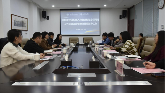 1月11日,山东省人力资源和社会保障厅人力资源流动管理处处长、一级调研员张成仙,二级调研员马莉亚等一行五人到我校调研交流。学校党委委员、副院长李玉英,经济管理学院院长席岩,学生工作处副处长万利,经济管理学院副院长李鹏及人力资源管理专业教师代表参加座谈会。会议由席岩主持。