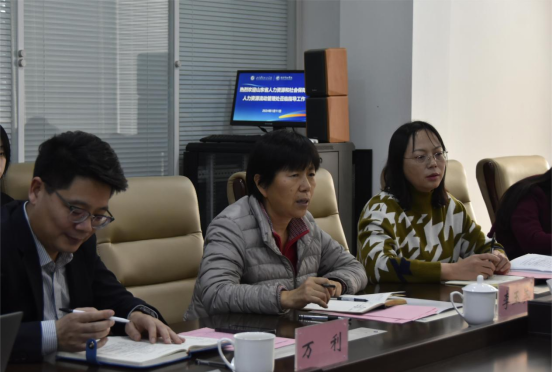 李玉英对张成仙一行的来访表示欢迎,对省人社厅多年来对学校工作的指导与支持表示了感谢。她从学校的历史沿革、办学特色、学科专业建设、师资队伍建设、人才培养等方面介绍了学校的基本情况。席岩介绍了经济管理学院的学科建设情况、就业工作情况、承揽横向项目和开展社会服务的情况以及学院发展总体规划。李鹏就近年来人力资源管理专业建设及发展情况进行了汇报。