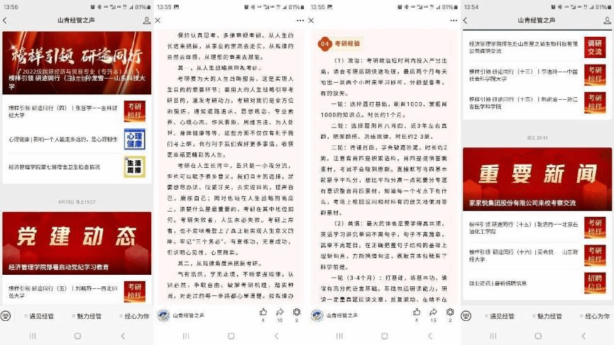 强化榜样引领,充分发挥先进典型影响力。充分发挥优秀学子的榜样示范作用,线上线下开展考研学子风采展,对考研录取学生进行宣传,分享考研经验心得,激励学生向优秀榜样看齐,强化引领带动。学院注重发挥党员、学生骨干带头作用,召开党员、学生骨干专题会议,倡议带头践行文明课堂公约,带头营造良好学风氛围。