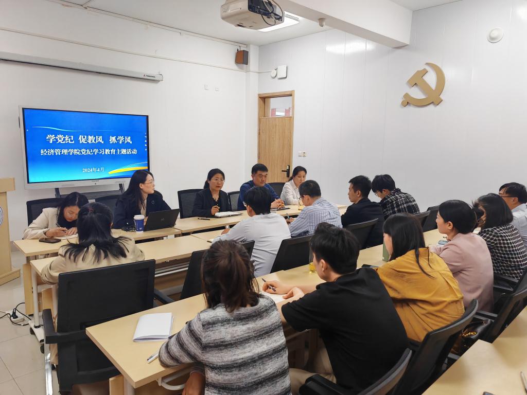 强化组织引领,专题研究学风建设工作。学院高度重视学风建设工作,将学风建设纳入学院党政工作重点。4月24日下午,学院组织“学党纪 促教风 抓学风”党纪学习教育主题交流会,经济管理学院党委书记张婷婷、副院长李鹏、党委副书记任正实、全体支部书记及教师党员代表参加。