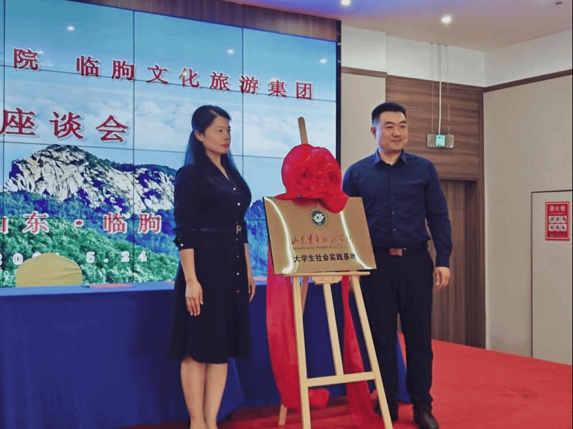 随后,任正实分别与王珊、辛万玉为山东青年政治学院大学生社会实践基地、山东青年政治学院大学生就业实习基地揭牌。