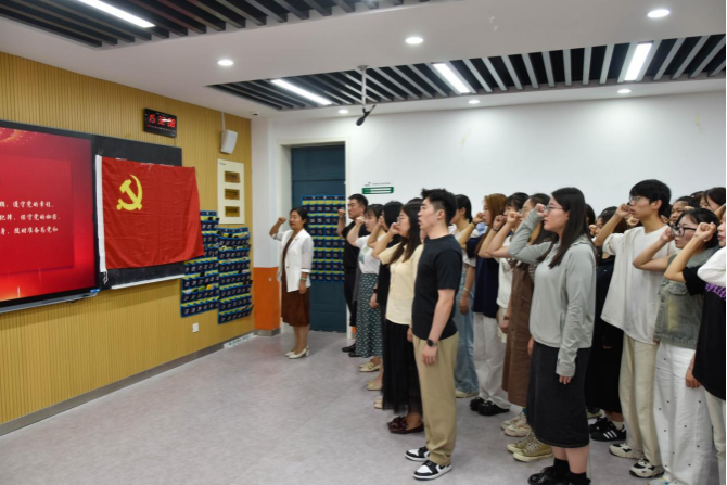 面向庄严的党旗,张婷婷带领全体党员重温入党誓词,铮铮誓言表达了党员们对党的忠诚和为共产主义事业奋斗的决心。