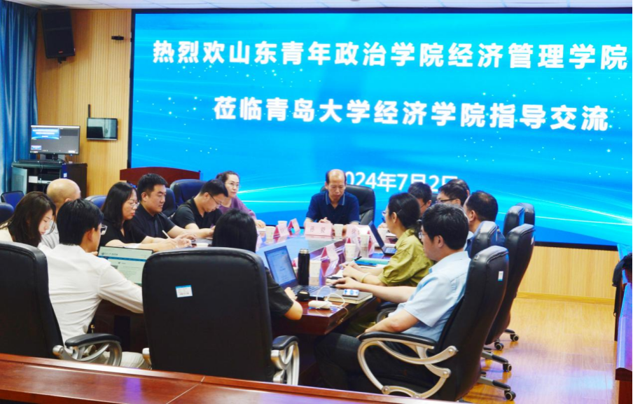 在青岛大学,该校经济学院党委书记邱建国介绍了学院发展的历史沿革,副院长逯进介绍了学院学科专业建设、师资队伍建设情况,分享了近年来学院在高水平成果产出方面的经验。副院长吕学梁详细介绍了学院专业设置、教学科研平台建设,以及在本科生培养方面的具体做法,通过开设创新实验班对生源进行优化,培养了一批具有创新思维的人才。副书记于文洁就学院以高质量党建引领学院事业高质量发展的“党旗领航+”工作品牌进行了详细介绍。双方围绕应用经济学学科专业建设、师资队伍建设、高水平成果产出、数字经济时代对传统专业升级改造要求、优秀毕业生推荐等内容展开了深入探讨与交流。