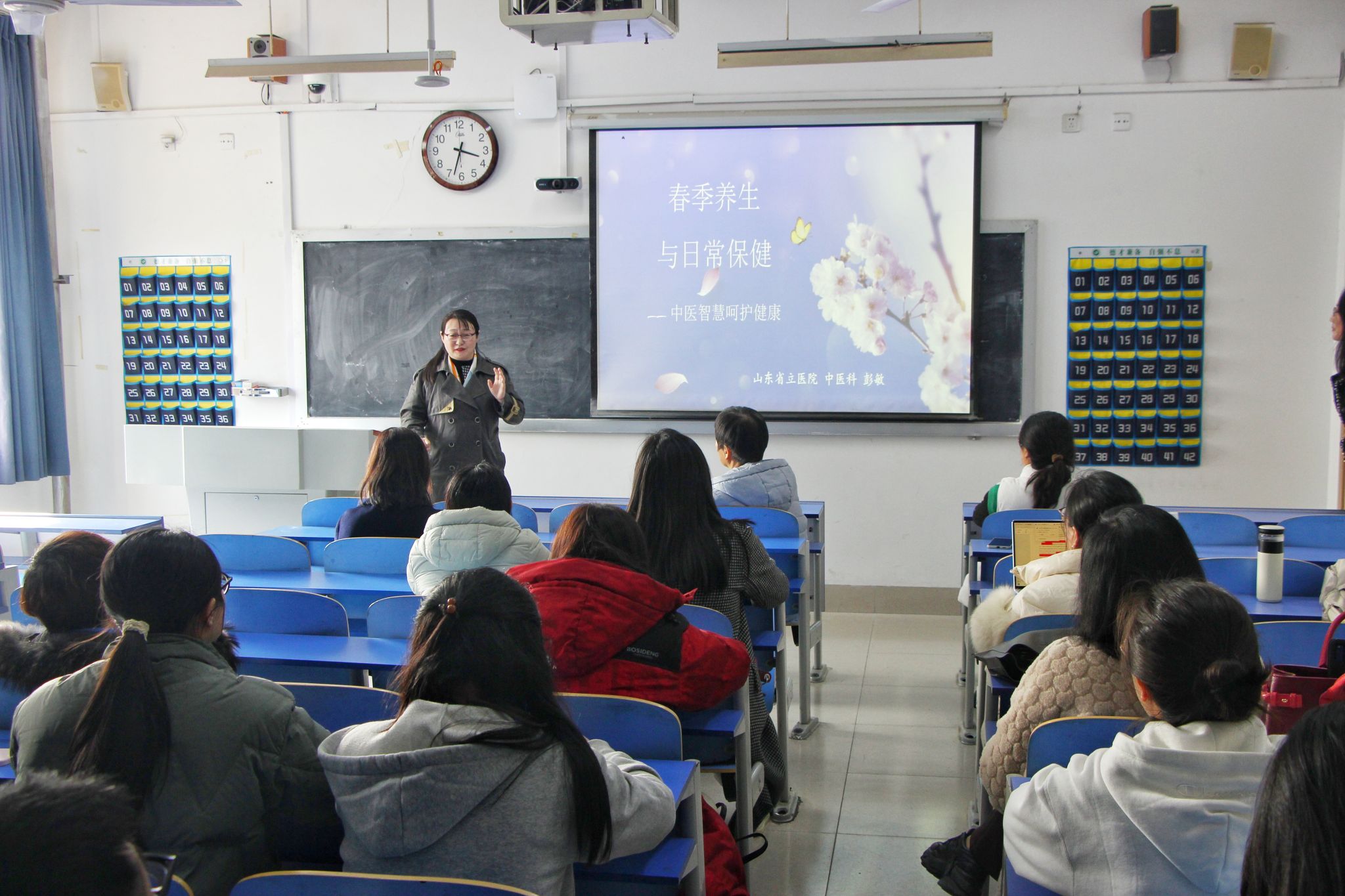 3月6日下午,在“三八”国际妇女节来临之际,经济管理学院特邀请山东省立医院中医科副主任、主任医师彭敏,举办题为“春季养生与日常保健”的专题讲座。彭敏主任结合中医理论与健康科普知识,通过生动的讲解与互动实践,为全体教职工送上了一份特殊的“健康礼”。