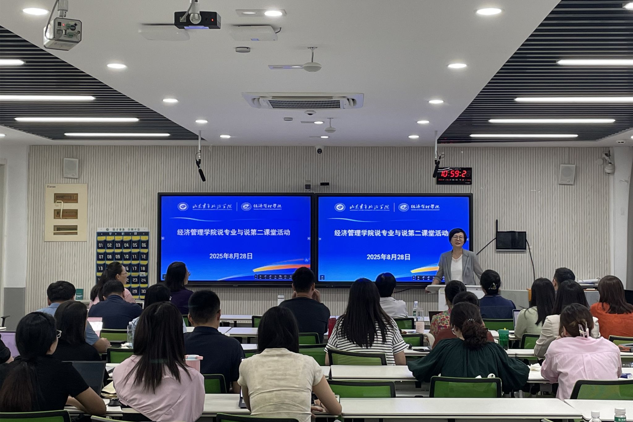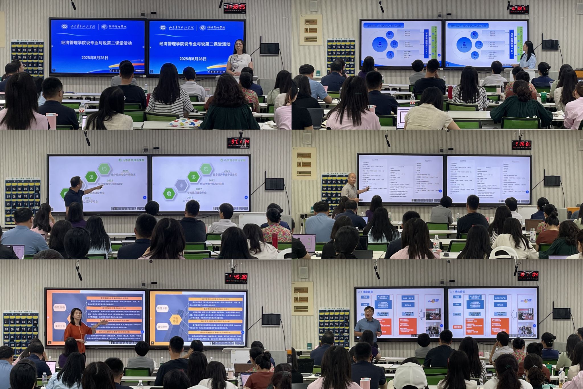 活动通过随机抽检方式对教师教学能力进行现场检验。参与教师紧密结合学科前沿与现实热点,围绕课程目标、学情分析、教学内容、方法与评价等方面展开系统说课。各专业负责人从人才培养目标、课程体系构建、执行成效、质量保障等七大维度,系统汇报专业建设进展与特色,深刻剖析存在问题与持续改进方向。学院学工办、团总支负责人专题汇报了以“协同育人”为核心的第二课堂活动体系,涵盖育人理念、系统架构、品牌项目及实施成效等方面。