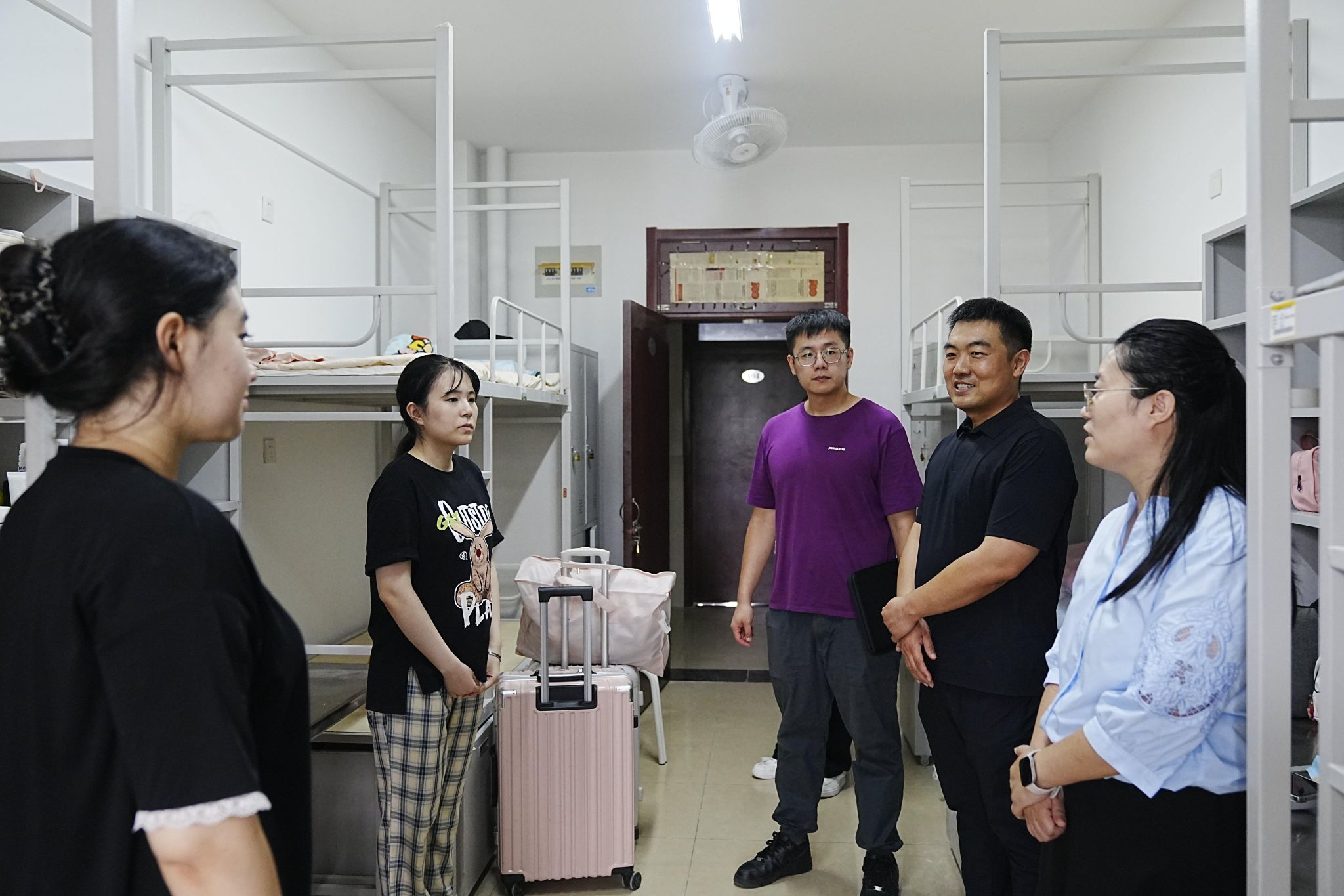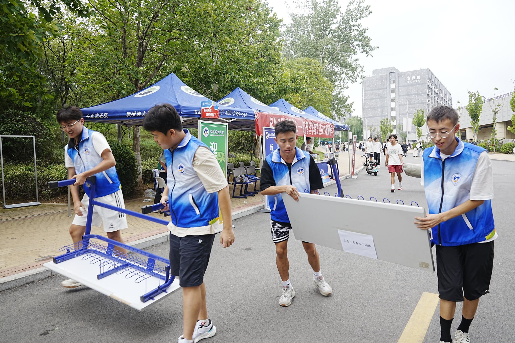 温馨周到,优化服务体验。报到当天,学院分别设立引导处与报到处,专设“党员先锋岗”与“绿色通道”,并在公寓区域安排志愿者提供引导和帮助。现场秩序井然,流程高效便捷,辅导员一线值守,为新生及家长答疑;志愿者们积极协助搬运行李、指引路线,展现出良好的精神风貌。当日下午,学院领导深入新生宿舍走访慰问,细致了解学生的生活需求与适应情况,鼓励大家积极融入新环境,并为新生今后的学习与生活提供切实建议。