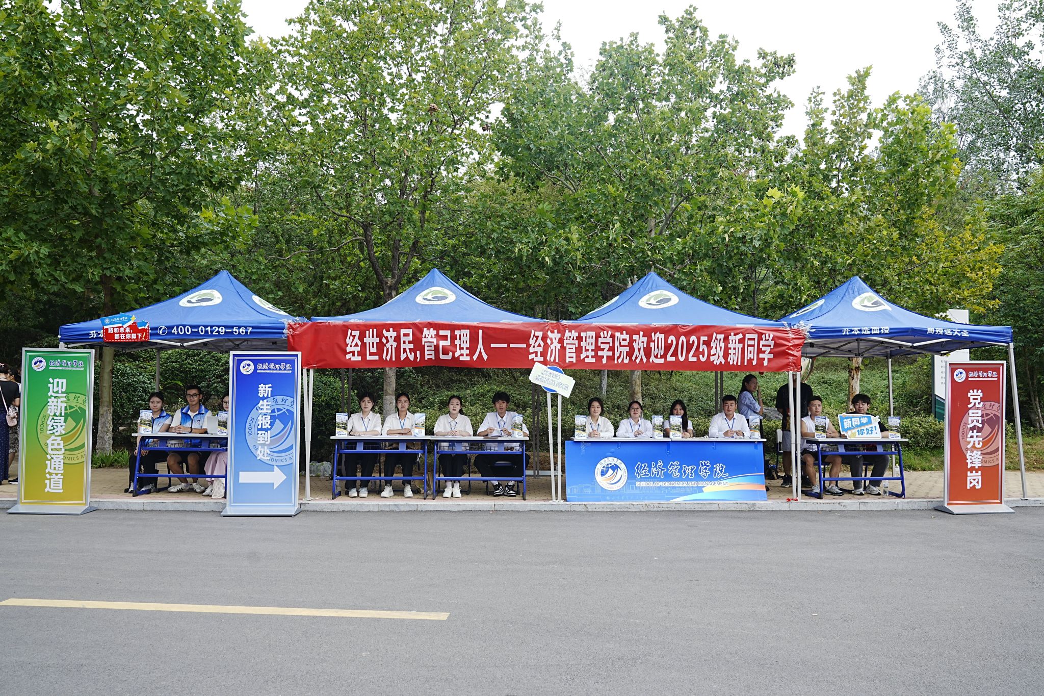 根据学校迎新工作总体安排,8月30日,经济管理学院2025级专升本新生顺利完成报到,开启本科阶段学习新征程。学院高度重视本次迎新工作,统筹协调辅导员、班主任、学生党员、骨干及志愿者等多方力量,以“人员到位、责任到岗、服务到心”为工作准则,高效、有序地推进各项流程,全面保障迎新工作顺利开展。