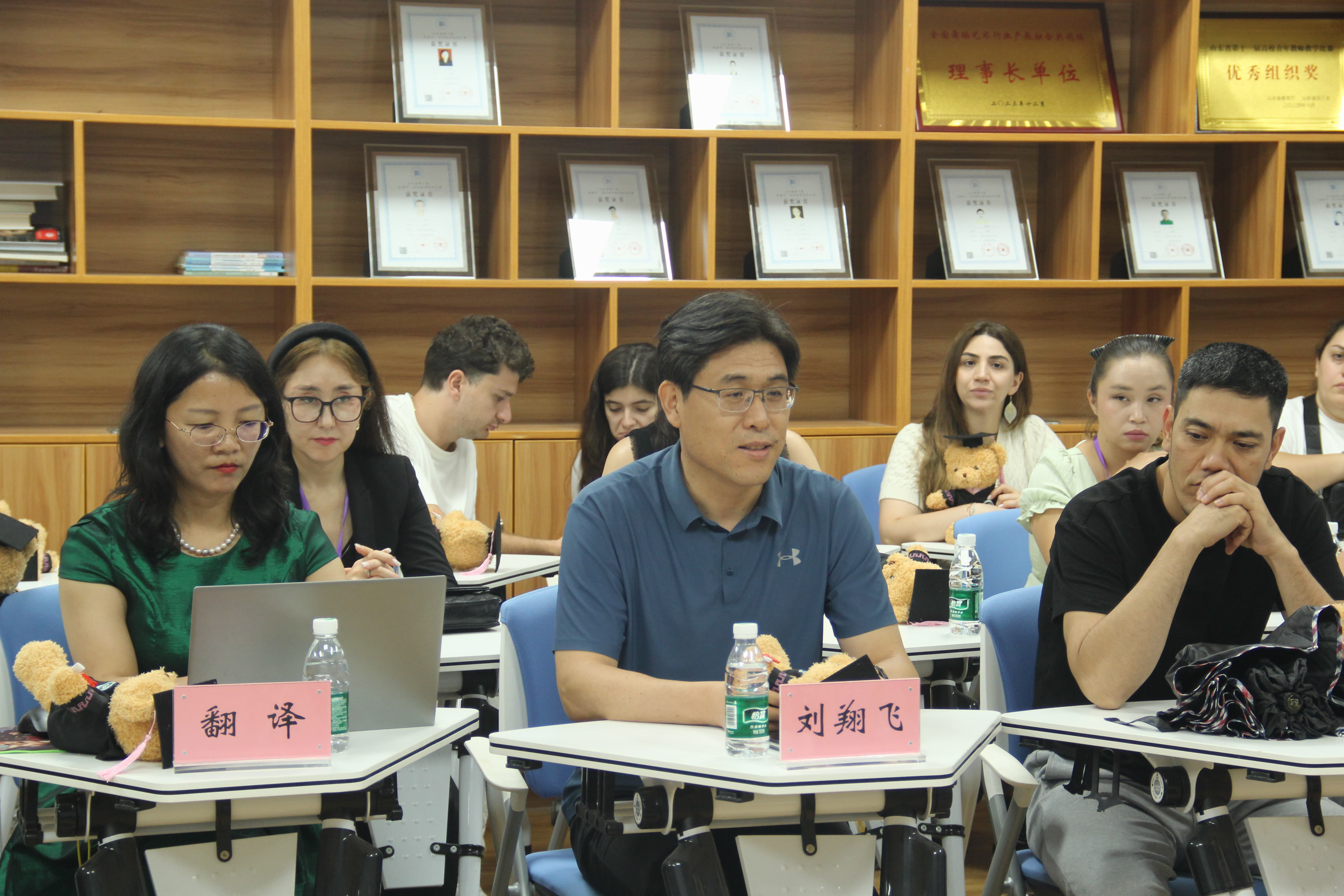 山东外贸职业学院国际官员研修学院副院长刘翔飞对学校的热情接待表示感谢,并详细介绍了援外培训情况以及本期学员的具体情况。随后,经济管理学院教师代表结合自身研究方向简要汇报了新质生产力发展研究情况并与研修班学员进行了交流研讨。