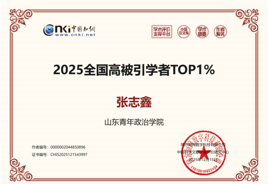 近日,中国科学文献计量评价研究中心发布《2025全国高被引学者》名单。我院教师张志鑫副教授成功入选工商管理学科高被引学者Top1%。