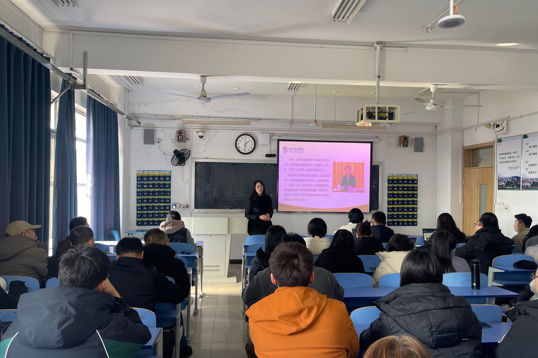 1月22日,经济管理学院召开全体教职工政治理论学习会,专题学习贯彻2026年全国教育工作会议精神,副院长李鹏作领学讲解,党委书记张婷婷主持会议。