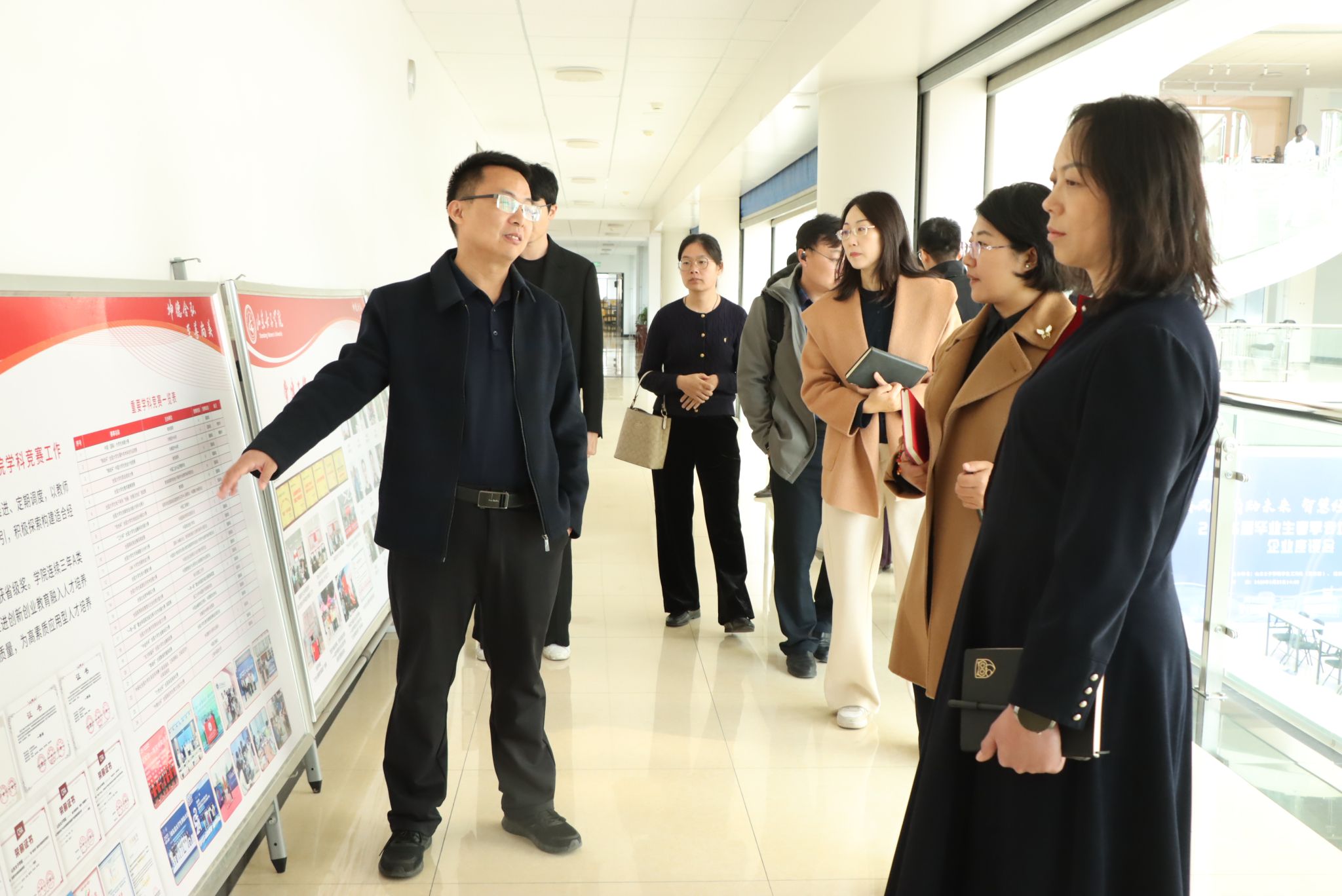 会后,经济管理学院一行参观了山东女子学院数字经济研究中心,进一步了解经济学院的学科发展、专业设置、师资建设及科研成果规划等情况。