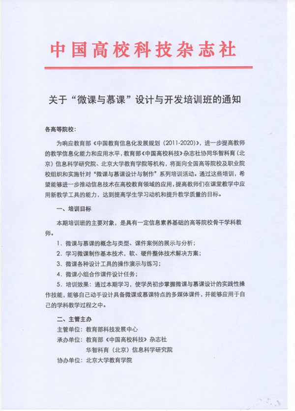 关于“微课与慕课”设计与开发培训班的通知