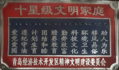 “十星级文明家庭”荣誉牌