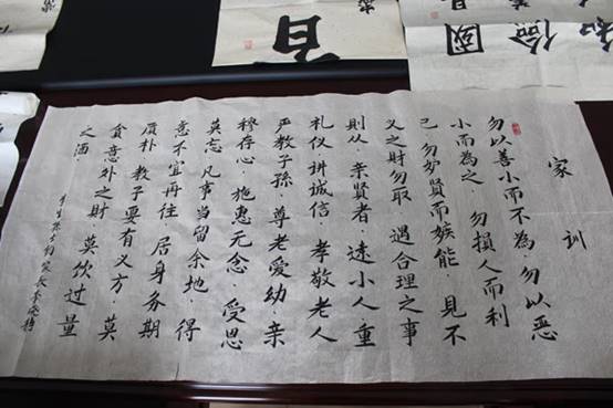 2019级市场营销专业刘子浩的外公于清明节写下的书法作品——“家训”