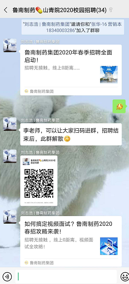 疫情防控期间,学院积极收集用人单位岗位需求,开展 “空中双选会” 、“云端招聘”等网上招聘活动,鼓励用人单位通过微信群、QQ群等方式发布招聘信息,累计发送企业招聘信息500余条,提供招聘岗位2700多个,为学生提供就业选择。3月13日上午,学院召开鲁南制药2020应届毕业生线上就业宣讲会,涵盖了市场营销、国际贸易、人力资源、经济学等专业。毕业班的同学们对活动反响较好,部分同学投递了简历,切实解决了一部分毕业生的求职需求;通过宣讲活动,学院明确了毕业生和用人单位双方当前的供需情况,更有利于下一步有针对性的帮扶与协调。学院后续将继续邀请企业参与。