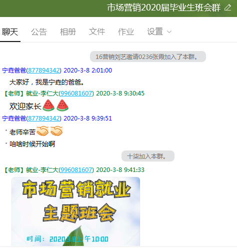 学院在人才培养和就业指导工作中高度重视家校联合育人,近期通过与家长连线沟通,不仅实现了就业信息和择业互动开到生源地和家庭,全面了解学生的就业意愿,还征求到了家长对大学生就业工作的意见建议,为我们下一步的工作改进指明了方向。同时,深入了解家庭情况也方便学院做好特殊群体就业工作,加强毕业生服务保障,实现精准帮扶。学院“就业的心愿、共同的责任”的大学生就业工作理念,得到了很多家长的肯定和赞许。