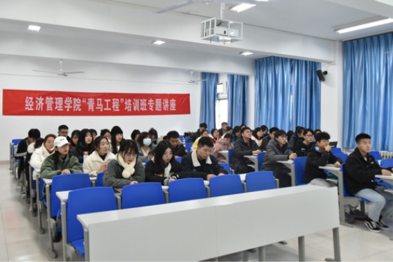 为持续推进学院青年马克思主义者培养工程,提高学生干部政治素质,12月3日下午,经济管理学院邀请马克思主义学院邵西梅老师在知行楼309为学院“青马工程”培训班学员开展专题讲座,主题为《马克思主义中国化最新成果相关理论解读》。“青马班”80余名学员参加了本次课程。