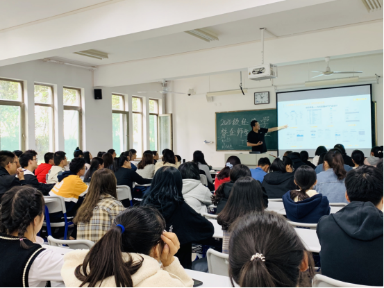 课上,曲伟老师对我校与慧科集团合作办学的背景、历程和人才培养模式进行了简要介绍。郑科宇讲师为同学们介绍慧科教育科技集团简介、互联网专业的研发背景以及互联网金融课程未来四年课程的实施,并围绕互联网金融行业发展、互联网金融定义、专业就业岗位、专业体系内容、专业应对政策、互联网金融专业学习的方法、适配该专业的学校等进行了多方面细致的讲解。授课过程中,全体新生全神贯注,饶有兴趣。20级新生积极踊跃举手发言,针对校企合作模式和互联网金融相关专业问题进行了提问。