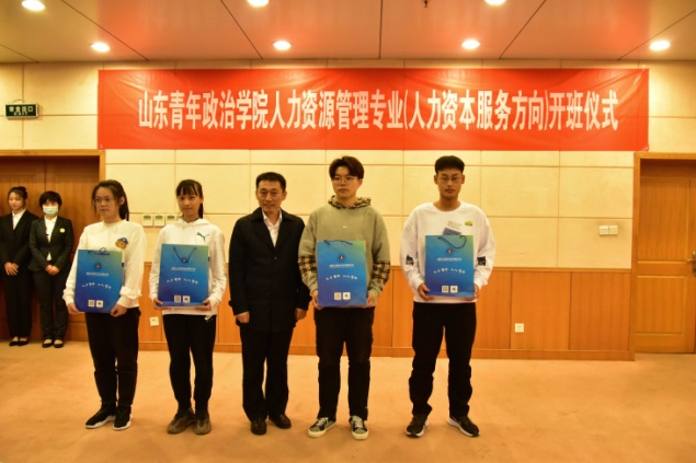为加速推动人力资本服务业落地,全面构建人力资本产业生态,山东青年政治学院与济南人力资本产业研究院联合开设的全国首个人力资源管理专业(人力资本服务方向)开班仪式在山东青年政治学院学术会议厅举行。中国人力资源开发研究会副会长杨河清,山东省人力资源与社会保障厅人力资源流动管理处处长刘保俭,共青团济南市委党组书记、市青联主席黄晓广,济南市教育局总督学成刚,济南市教育局高校联络服务处处长王志国,济南综合保税区管委会常务副主任、党工委副书记兼高新区管委会副主任、党工委委员张维国,济南人力资本产业研究院执行副院长王安中,济南人力资本产业研究院副院长韩俊杰,山东青年政治学院党委书记鹿林、副院长王林山等出席开班仪式。开班式由山东青年政治学院党委副书记高峰主持。