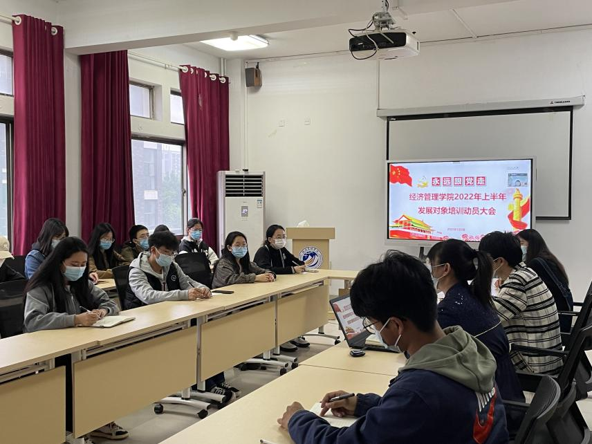 5月9日下午,经济管理学院召开2022年上半年发展对象培训动员会,经济管理学院党委副书记张冰出席会议并讲话,组织员、各学生党支部书记和学院2022年上半年全体发展对象参加会议。