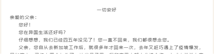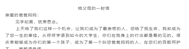 书写一封家信,抒发思念感恩之情。为提升学生感恩意识,加强与家人间的情感交流,活动中通过书写家信环节,引导学生抒发对家人的内心情感,在书信中表达难以言语的爱。在重阳节来临之际,学生纷纷参与书写家信的活动,表达内心对亲人的情感。活动中2021级人力资源管理专业1班的孙程程表示,通过写一份家信,我更好地理解了我的父亲。父亲身上的担子很重,要支撑起我们这个小家,每天很辛苦。我希望自己可以帮助父亲分担压力,所以自己更深刻地感受到自身责任,要更好地发展自己,不断努力成长成才。
