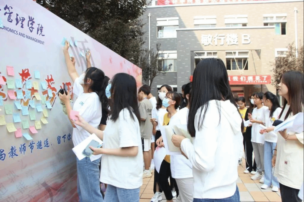 9月10日,中秋佳节喜逢第38个教师节,经济管理学院组织开展“桃李芬芳师恩切,花好月圆情意浓”祝福墙、让“家”更温馨、班级中秋喜乐会等活动,为在校的同学们和老师们送上节日祝福,倾听学生心声,师生共度双节。