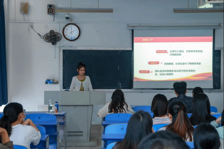 分享会上,各实践团队分别围绕党史学习教育、理论宣讲、国情观察、乡村振兴、社区实践、专业调研等主题展开各自团队的实践情况分享。暑期社会实践队员隋源分享到:通过参与暑期社会实践活动,使我得到了锻炼,增强了对党、国家和社会的责任使命感。在今后的学习生活中,更要坚定自己的理想信念,系好人生的第一颗纽扣,以自身的实际行动诠释当代青年大学生的责任和使命。