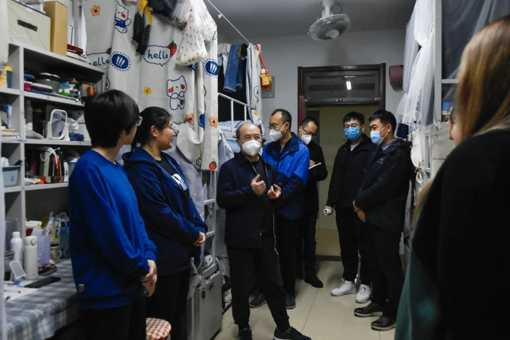 王林山先后走访了3号、10号公寓。走访中,王林山与同学们进行亲切交谈,仔细询问大家在生活、学习等方面遇到的困难及对于校园管理的意见和建议。交谈中他表示,在积极配合学校管理的过程中,同学们如果遇到困难要及时向老师反映,学校永远是同学们的坚实后盾,竭尽全力为大家创造良好的学习和生活环境。他叮嘱同学们,当前疫情防控形势依然严峻,要提高个人防护意识,严格按照疫情防控要求做好个人防护;还要认真完成线上课程学习任务,利用在校时间立足专业得基础上拓宽知识面,多读书,以读书为基础提升写作能力和实操能力,以适应社会发展的需要;此外还要加强体育锻炼,保持积极乐观心态,充分利用这段时间不断完善自我,发展自我,做一名有理想、有本领、有担当的新时代青年,为建设社会主义现代化强国和人类命运共同体的发展贡献个人的全部智慧和力量。