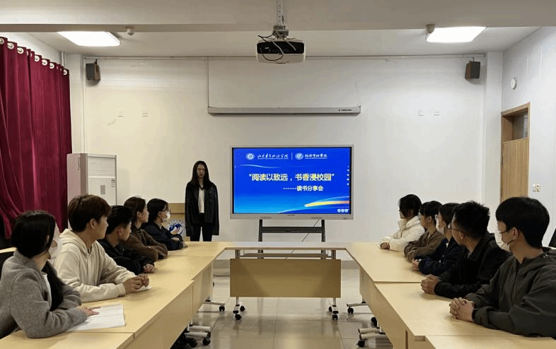 活动中,学院全体辅导员老师分别以座谈交流、主题班会、主题团日的形式,通过开展读书分享会、朗诵大赛、每日读书打卡、好书推荐等活动为依托,引导和鼓励青年参与到读书中来,在纸墨书香间坚定理想信念,品味经典中蕴含的沉潜力量,用书香打造美丽山青。同学们纷纷表示通过读书活动获益匪浅,21级国际商务(中英合作)1班的尚靖涵分享到:阅读是人类获取知识、培养道德的重要途径,在世界读书日之际,我们一起阅读、思考,真正感受到了读书的乐趣,在今后的学习生活中,我们更应该把读书养成终生学生的习惯,在读书中增长见识、感悟人生哲理,争做有理想、敢担当、能吃苦、肯奋斗的新时代好青年。
