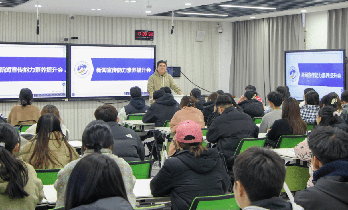为加强学院新闻宣传队伍建设,提高学生骨干新闻宣传能力素养,11月20日下午,经济管理学院组织召开学生骨干成长训练营新闻宣传能力素养提升培训会。学院宣传员姜旭、学院第九届学生组织各部门部长以及志愿者代表80余人参加培训。