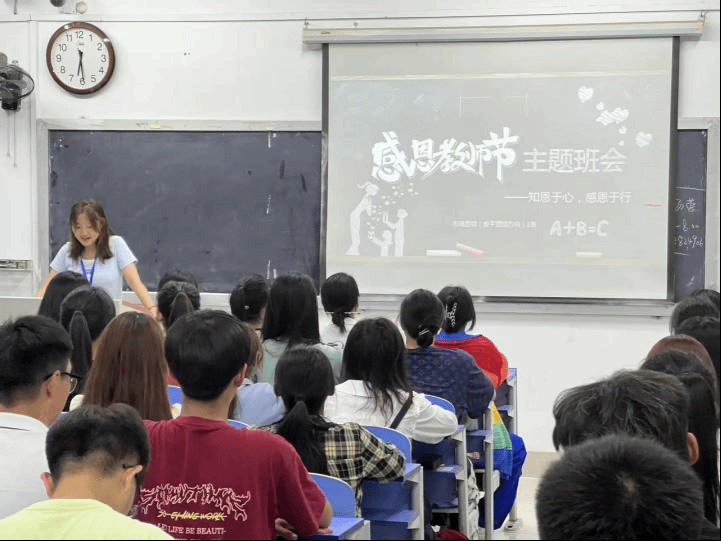 学院全体辅导员老师分别以座谈交流、主题班会、主题团日活动等形式,深入学习习近平总书记致全国优秀教师代表的信,帮助同学们深刻了解我国尊师重教优良传统。班级同学们通过讲述与老师之间的故事,以生动的语言展现对老师的感恩之情,最后同学们通过留言、寄信、赠贺卡等形式,向老师送上温馨的问候和温暖的祝福,以感谢老师们的谆谆教导和无私奉献。