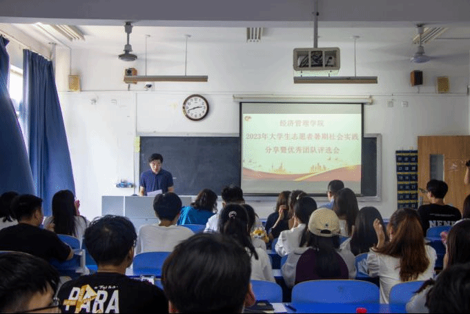 为深入总结暑期社会实践成果,强化社会实践育人成效,8月31日,经济管理学院在敏行楼515举办2023年暑期社会实践分享暨优秀团队评选会。经济管理学院团总支书记、学工办主任夏晓丽,辅导员以及各暑期社会实践团队成员等80余人参加了本次活动。
