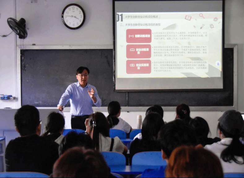 为深化落实立德树人根本任务,培养大学生创新创业精神和社会实践能力,提高项目申报和研究质量,经济管理学院于4月25日举办了2024年大学生创新创业训练计划项目申报培训会,邀请经验丰富的杨敏、赵大伟老师进行指导培训。