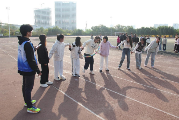 本次运动会设置了呼啦圈过山车、“8”字跳大绳、齐心拔河、师生趣味接力、师生投壶以及师生毽子比拼六大趣味项目,由各专业师生组成七支代表队。