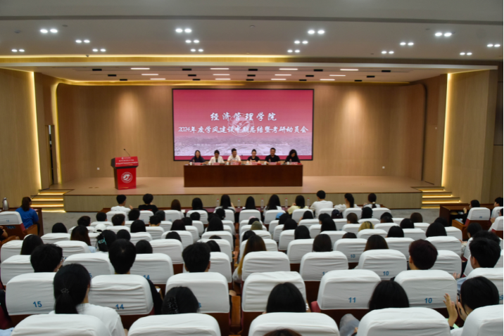 为加强学风建设,进一步提升学风建设工作成效,以学风引领助力考研,赋能学生全面发展,6月28日,经济管理学院召开2024年度学风建设中期总结暨考研动员会,学生工作处副处长万利、教务处副处长田钰佳、经济管理学院党委书记张婷婷、党委副书记任正实出席会议,学院辅导员代表、教师代表和学生代表参加。
