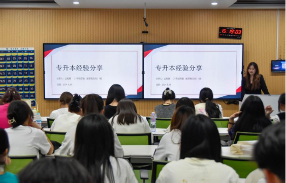 耕耘更知韶光贵,不待扬鞭自奋蹄。为进一步促进优良学风建设,切实推进落实“发展型”资助,帮助同学们了解专升本考试相关政策要求,分享成功经验,提升应试能力,经济管理学院充分发挥榜样引领作用,举办“朋辈引领,助力升本”专升本经验分享会。