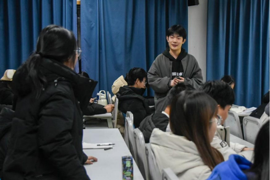 在交流互动环节,现场学生提出自己在学习过程、时间管理、竞赛实践中遇到的问题,分享人耐心解答,不仅给出了实用的建议,还引导同学们合理规划时间,制定详细的学习计划并严格执行,同时也提醒大家要注意劳逸结合,保持良好的学习状态。